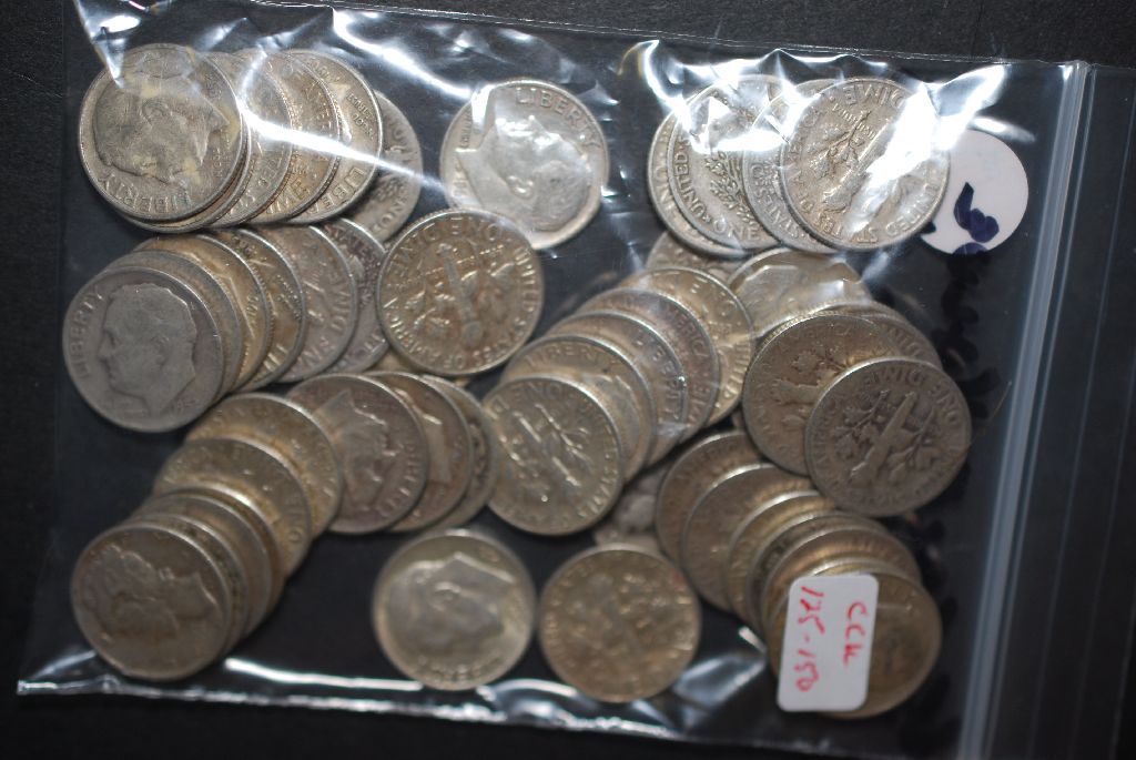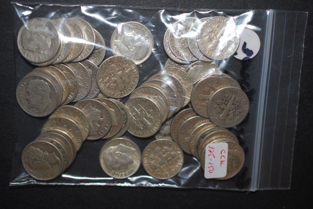 US Silver Dimes $5 Face Value; Various Dates, Conditions & Mint Marks; Lot of 50; EST. $125-150