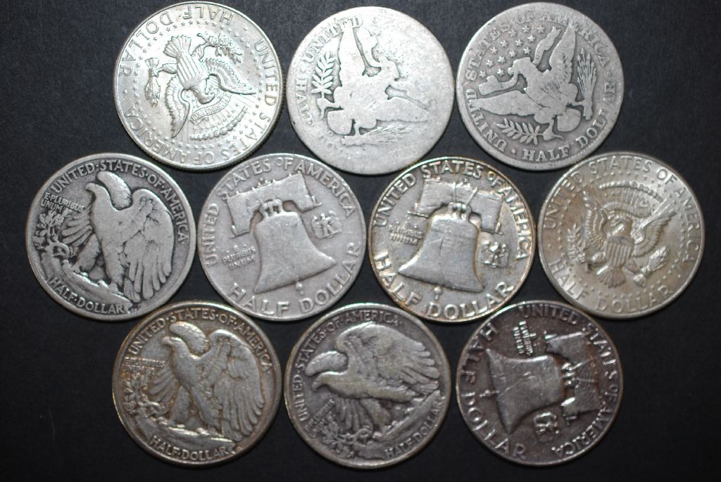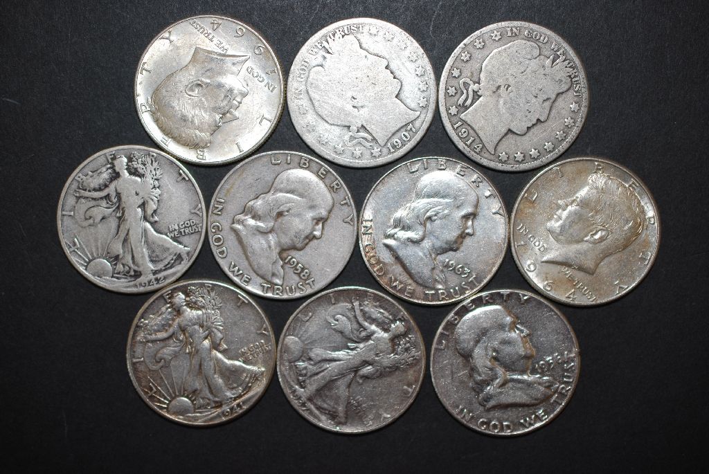 US Silver Half Dollars $5 Face Value; Various Dates, Conditions & Mint Marks; Lot of 10; EST. $125-150