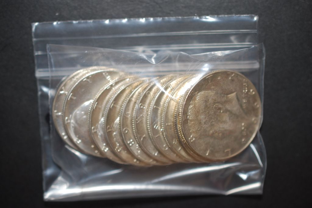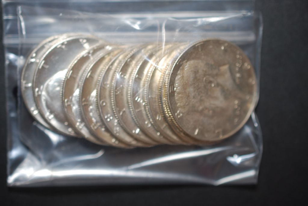 US Silver Kennedy Half Dollar $5 Face Value; Various Dates, Conditions & Mint Marks; 40% Silver; Lot of 10; EST. $65-75