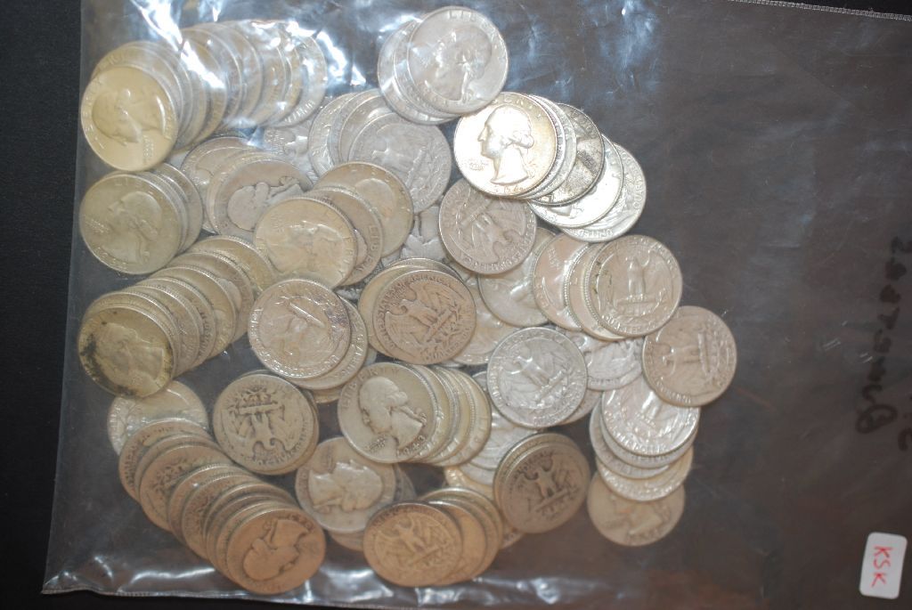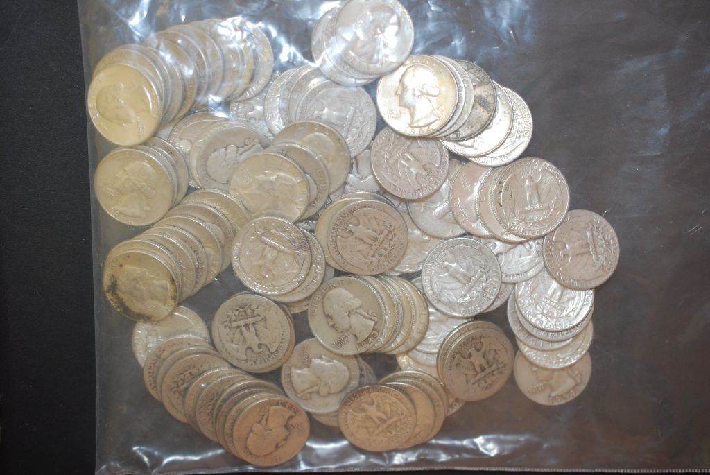 US Silver Quarters $25 Face Value; Various Dates, Conditions & Mint Marks; Lot of 100; EST. $575-600