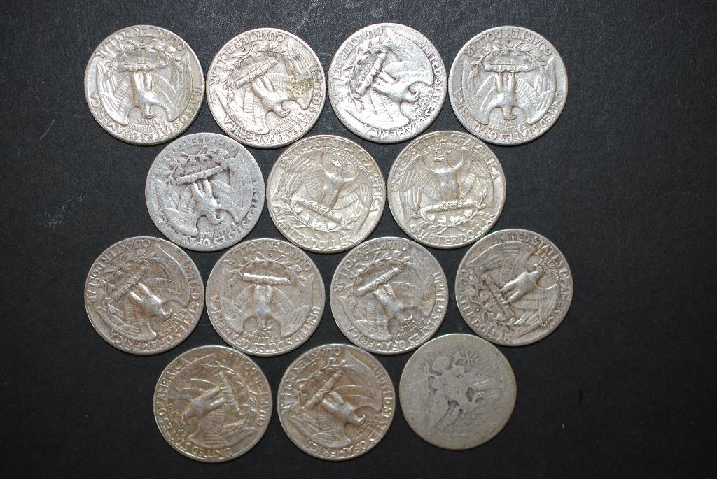 US Silver Quarters $3.50 Face Value; Various Dates, Conditions & Mint Marks; Lot of 14; EST. $90-110