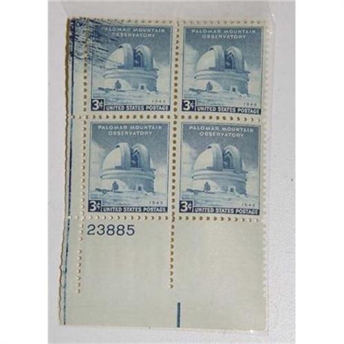 1948 - 3¢ Palomar Mountain Observatory - Scott #966 plate block of 4 with a streak error in