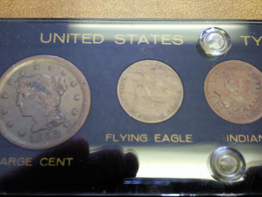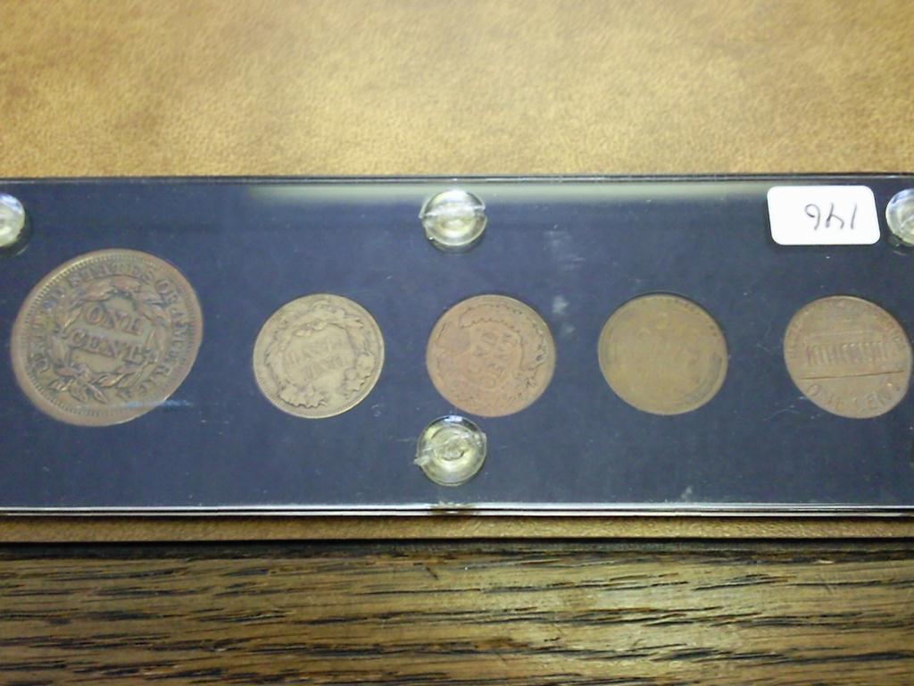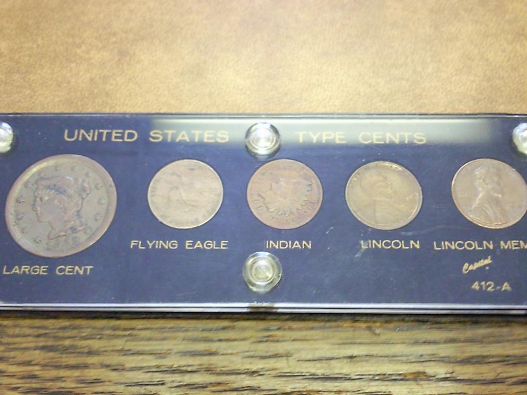 1852 US LARGE CENT (EXTRA FINE+), 1857 FLYING EAGLE CENT (VERY FINE), 1901 INDIAN HEAD CENT (EXTRA FINE), 1909-VDB LINCOLN WHEAT CENT (EXTRA FINE), 1970-S LINCOLN CENT