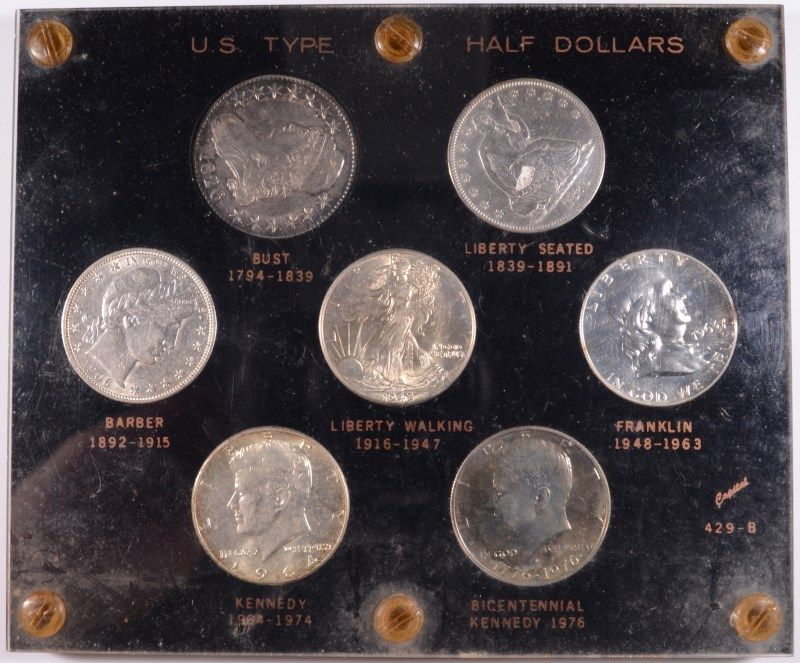 US TYPE SET OF HALF DOLLARS W/CAPITAL PLASTIC (BUST, SEATED, BARBER, WALKER, FRA