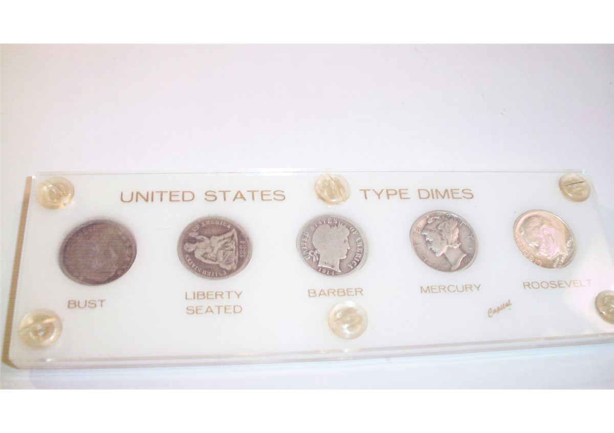 US TYPE SILVER DIME SET, 5 COINS