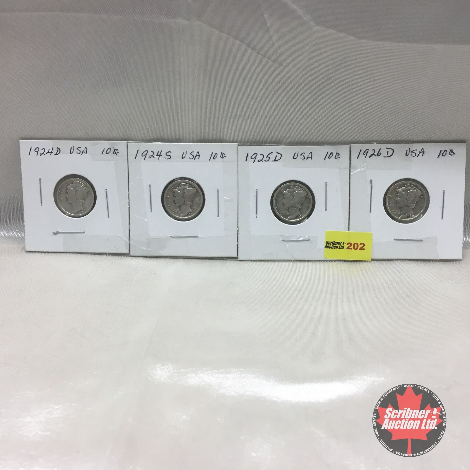US Ten Cent - Strip of 4: 1924D; 1924S; 1925D; 1926D