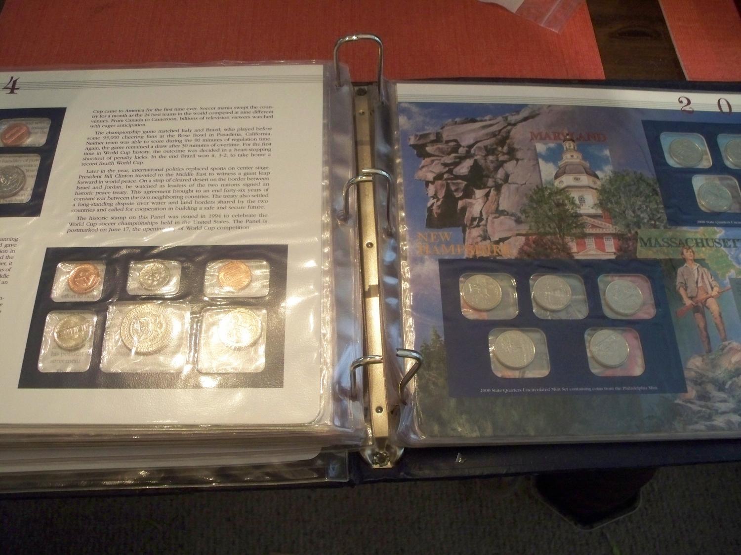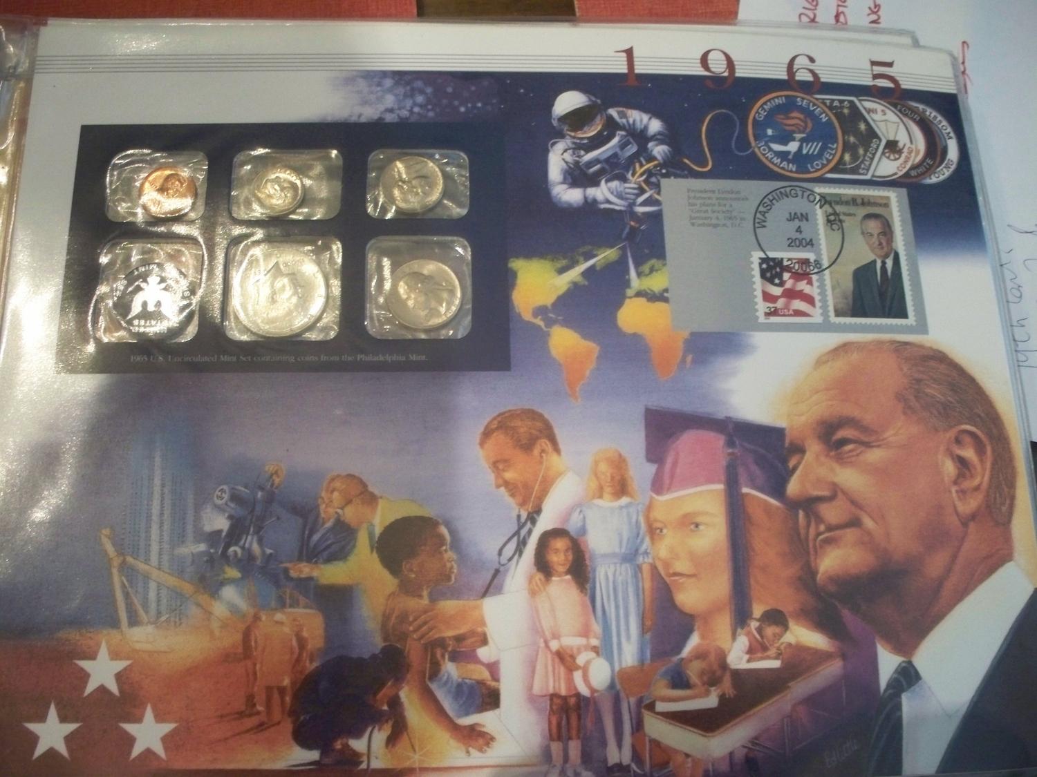 US UNCIRCULATED MINT SET COLLECTION 1965-1994 PLUS 2000-2003 W/10 STATE QUARTERS. Complete mint sets with stamps and commemorative postmarks from 1965 to 1994 and 2000 to 2003 plus 10 state quarters per year from 2000 to 2003