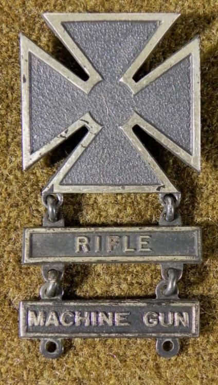 US WWII MARKSMANSHIP BADGE W/RIFLE & MACHINE GUN BARS-2 MARKED STERLING * GREAT CONDITION---BADGE & RIFLE BAR MARKED STERLING *