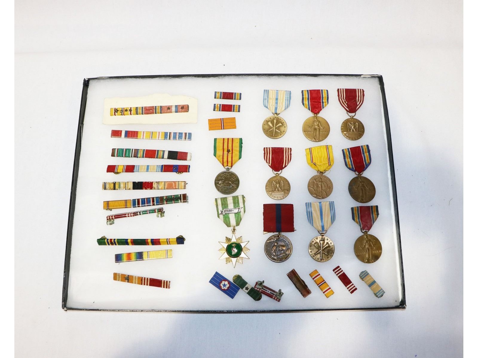Includes 11 service medals and various ribbon bars. Display case is not included.