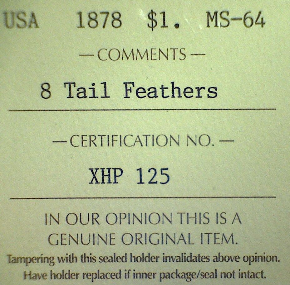 USA - $1.00 - 1878 - 8 Tail Feathers - ICCS - MS-64