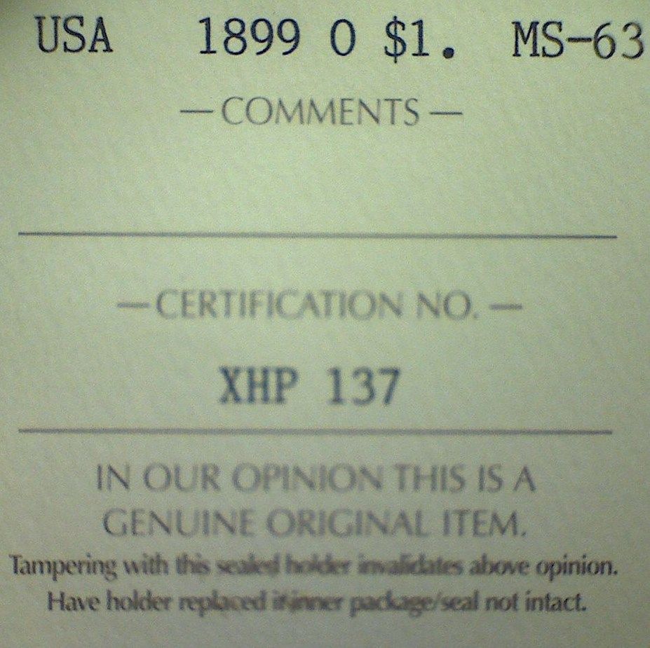 USA - $1.00 - 1899-O - ICCS - MS-63