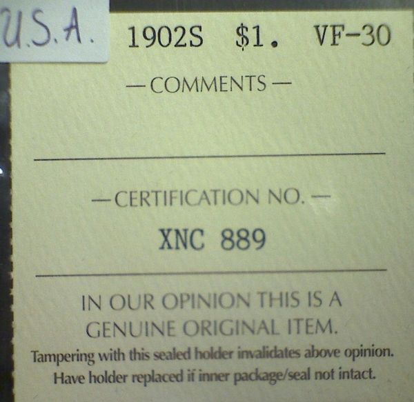 USA - $1.00 - 1902-S - ICCS - VF-30