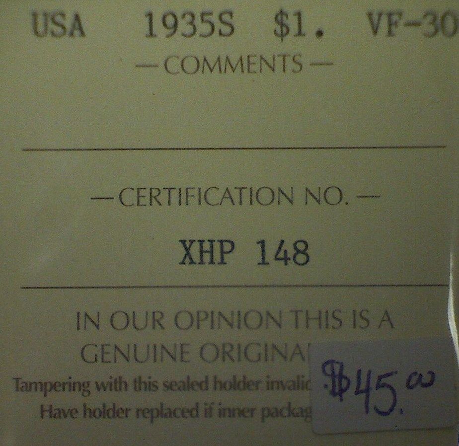 USA - $1.00 - 1935-S - ICCS - VF-30