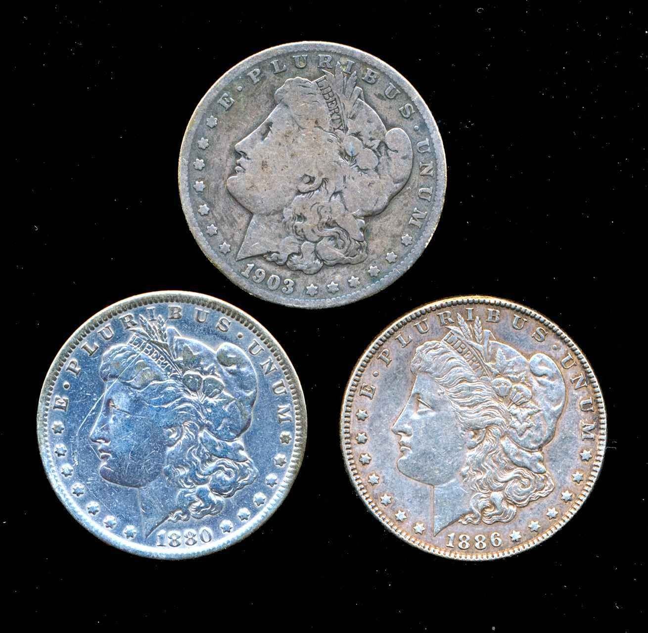 1 x 1880 cleaned VG, 1 x 1886 even wear EF and 1 x 1903 S possible micra s? F+