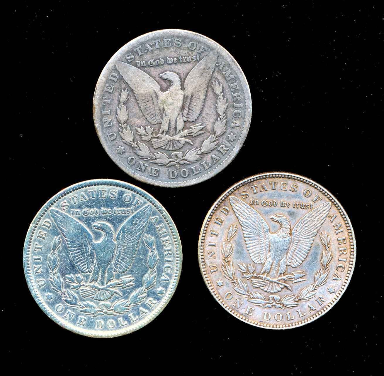 USA $1.00 Morgan 1880-1903. A Lot of 3 Pieces VG-VF