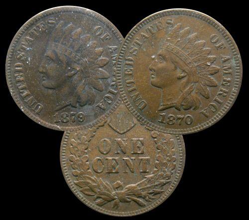 USA 1 cent 1870 EF-40, 1 cent 1879 V
