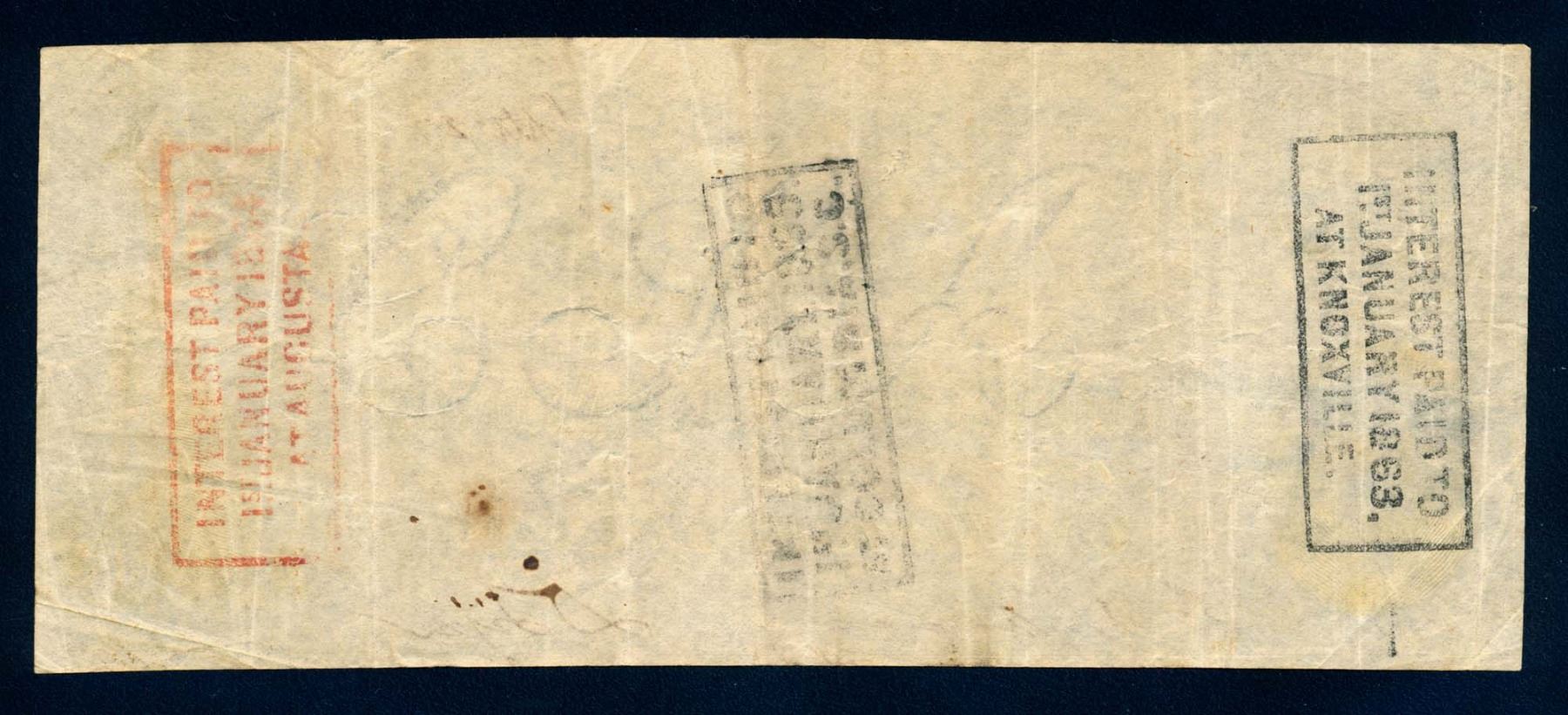 184 mm. x 77 mm. S/N 20401 Rev: 3 paid interest stamps for 1863, 1864 & 1865
