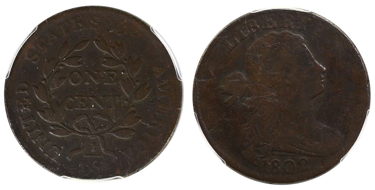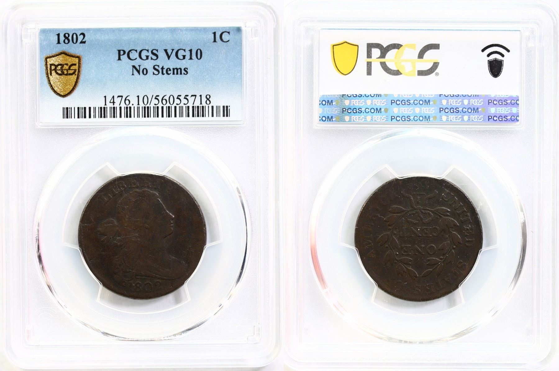 USA; 1802 1¢ "No Stems" PCGS VG10