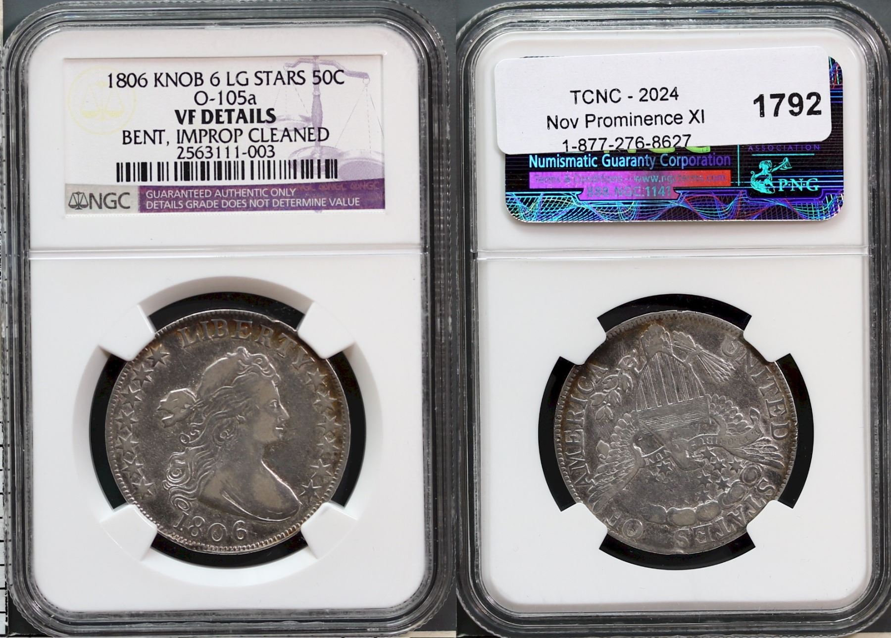 USA; 1806 50¢ Knob 6 Lg Stars O-105a NGC VF Details Bent, Improp Cleaned