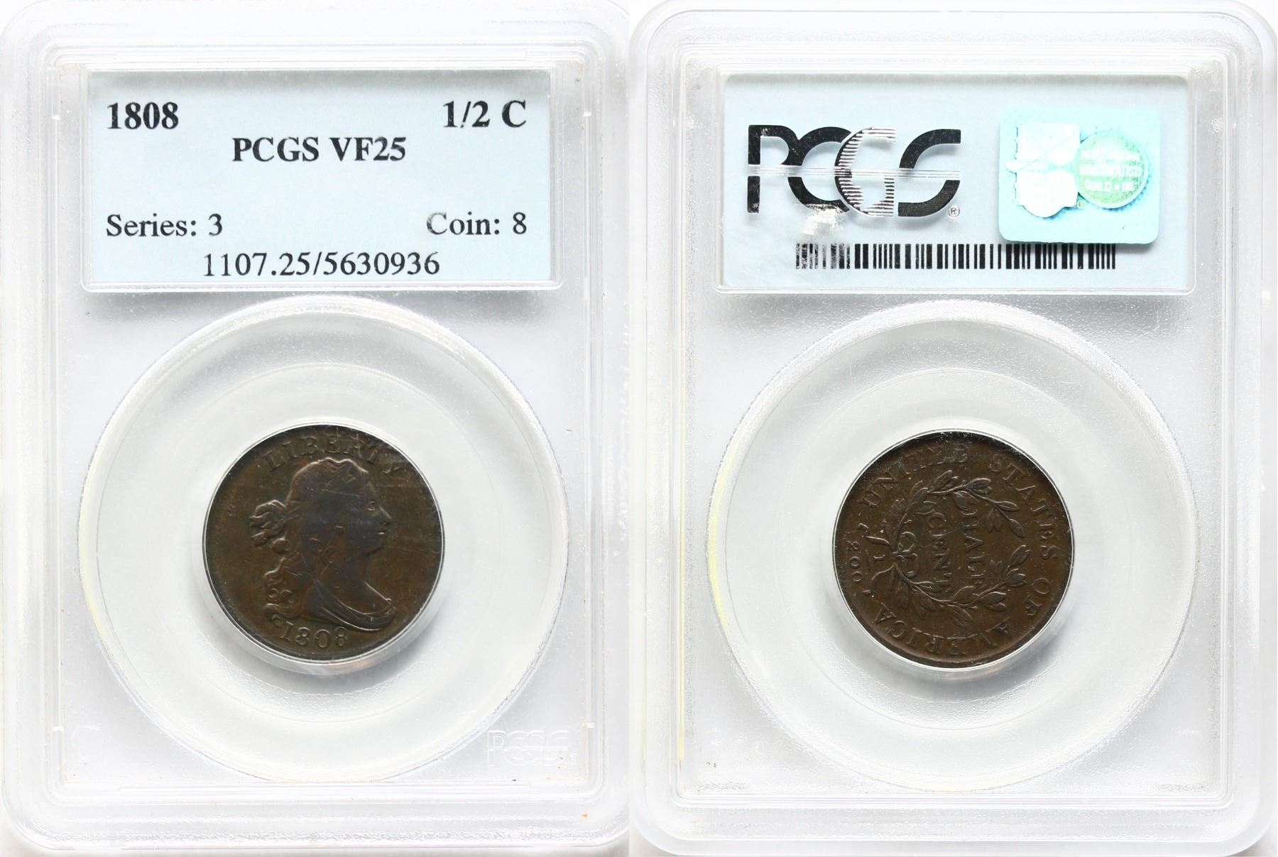 USA; 1808 1/2¢ series 3 coin 8 PCGS VF25