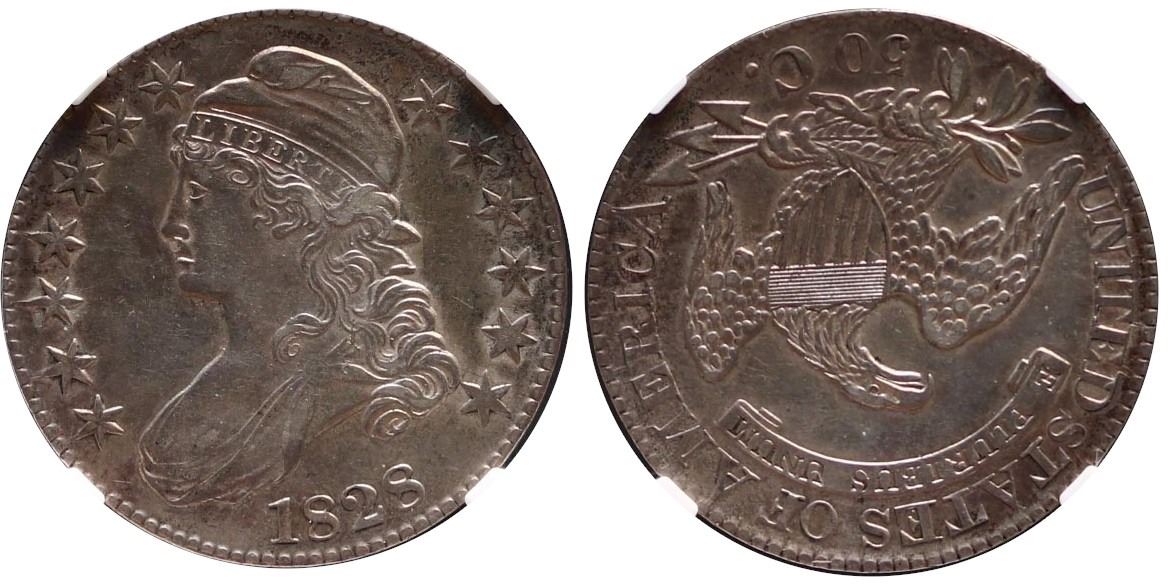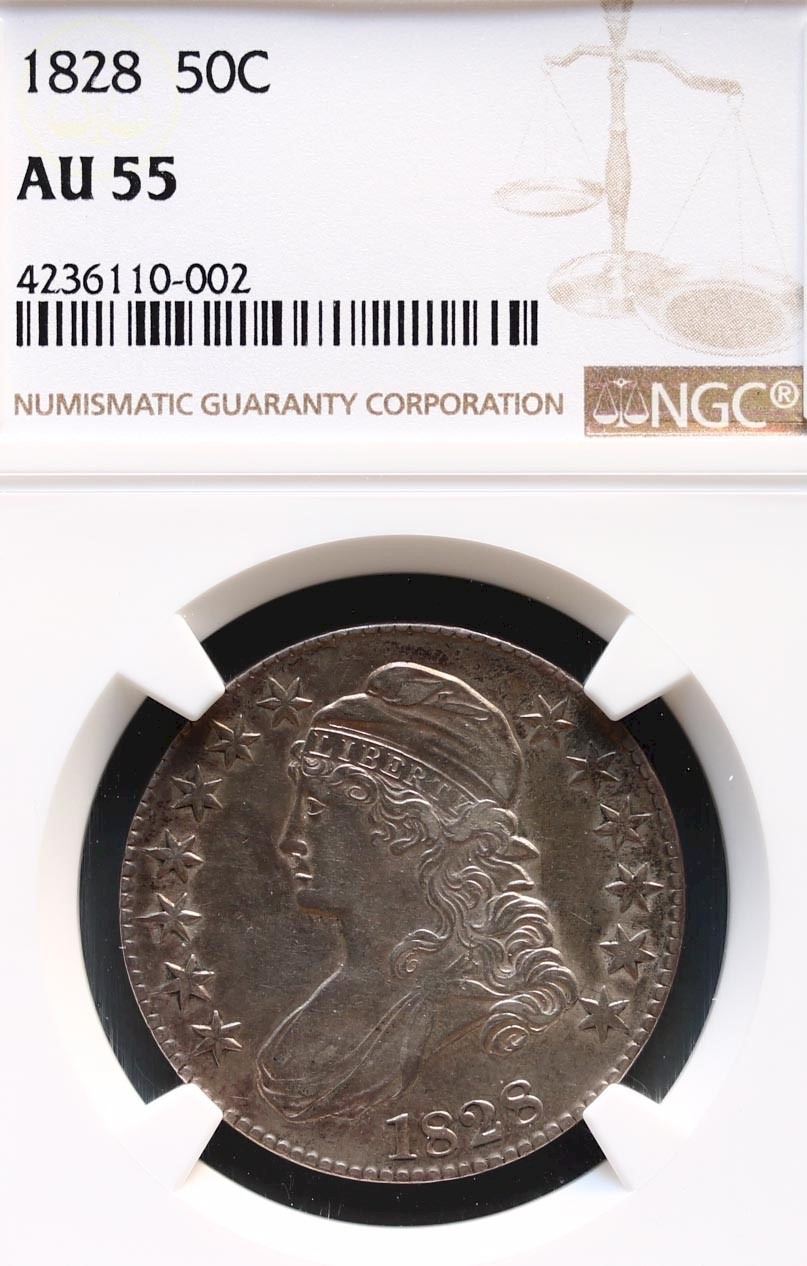 USA; 1828 50¢ NGC Choice About Uncirculated-55. Attractive lustrous fields under light silvery grey tones