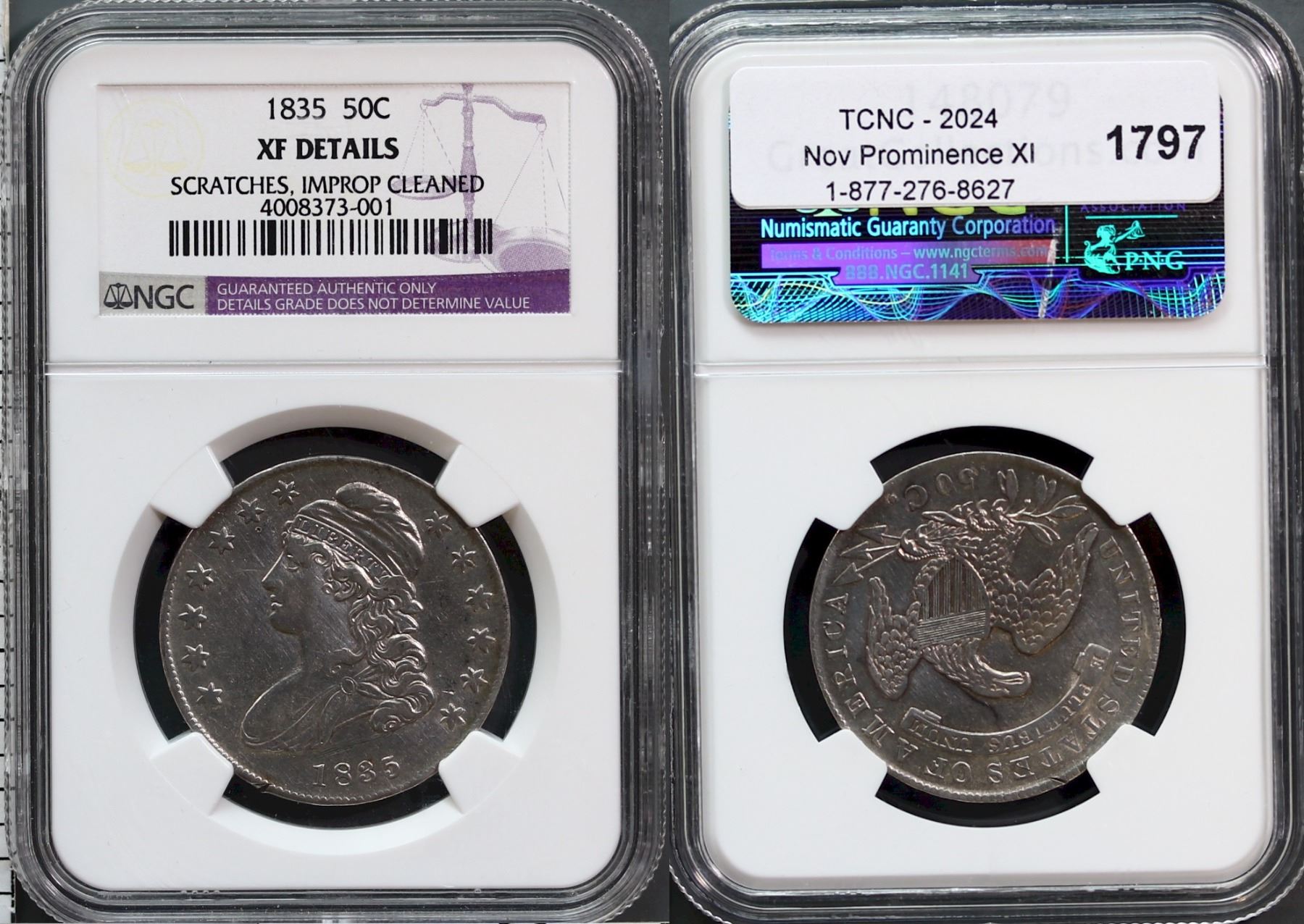 USA; 1835 50¢ NGC XF Details Scratches, Improp Cleaned