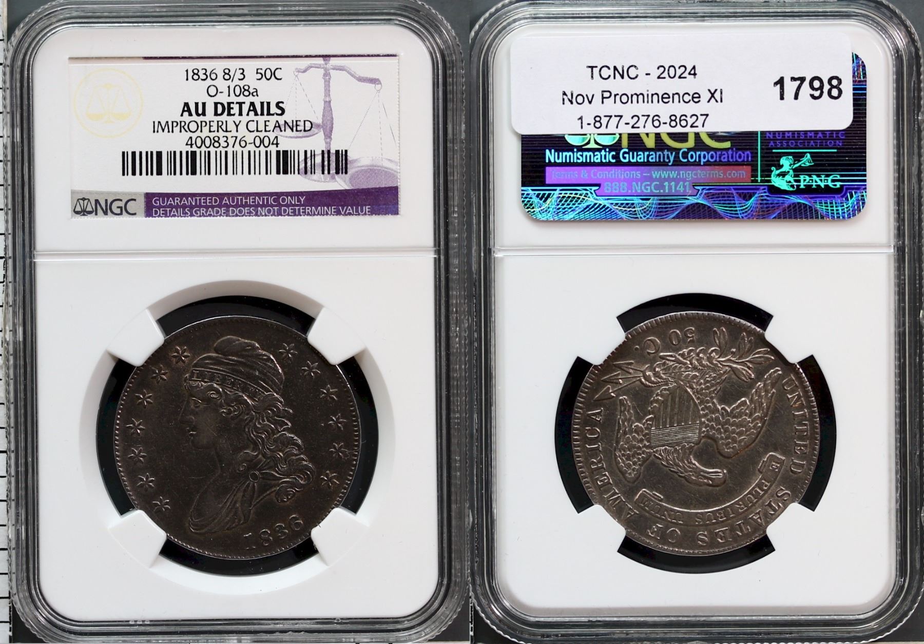 USA; 1836 8/3 50¢ O-108a NGC AU Details Improperly Cleaned