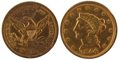 USA 1854 $2½ Gold, EF. Reverse shows planchet damage.