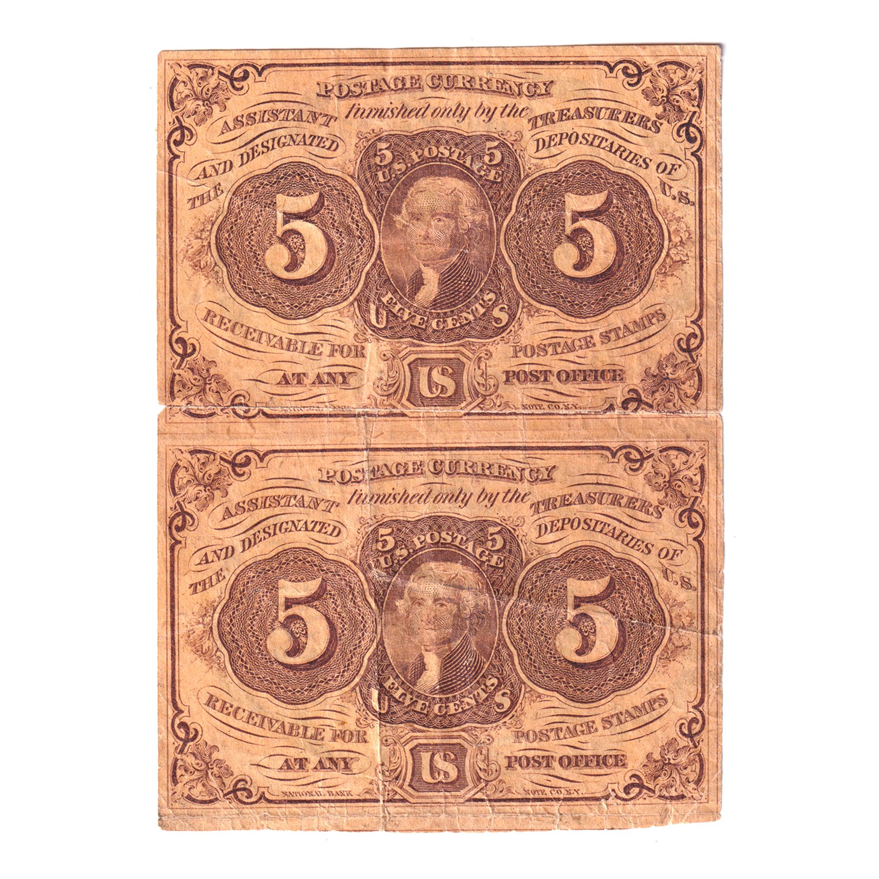 USA 1862 FR-1230, Pick-37 5-cent Pair of Uncut Fractional Notes