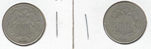 USA 1868 VG & 1882 VF 5¢. Lot of 2 coins.