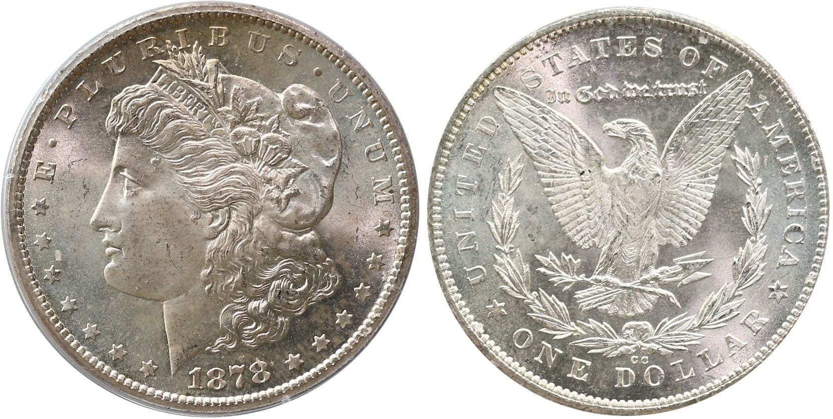 USA; 1878-CC $1 PCGS MS65 Brilliant and lustrous example