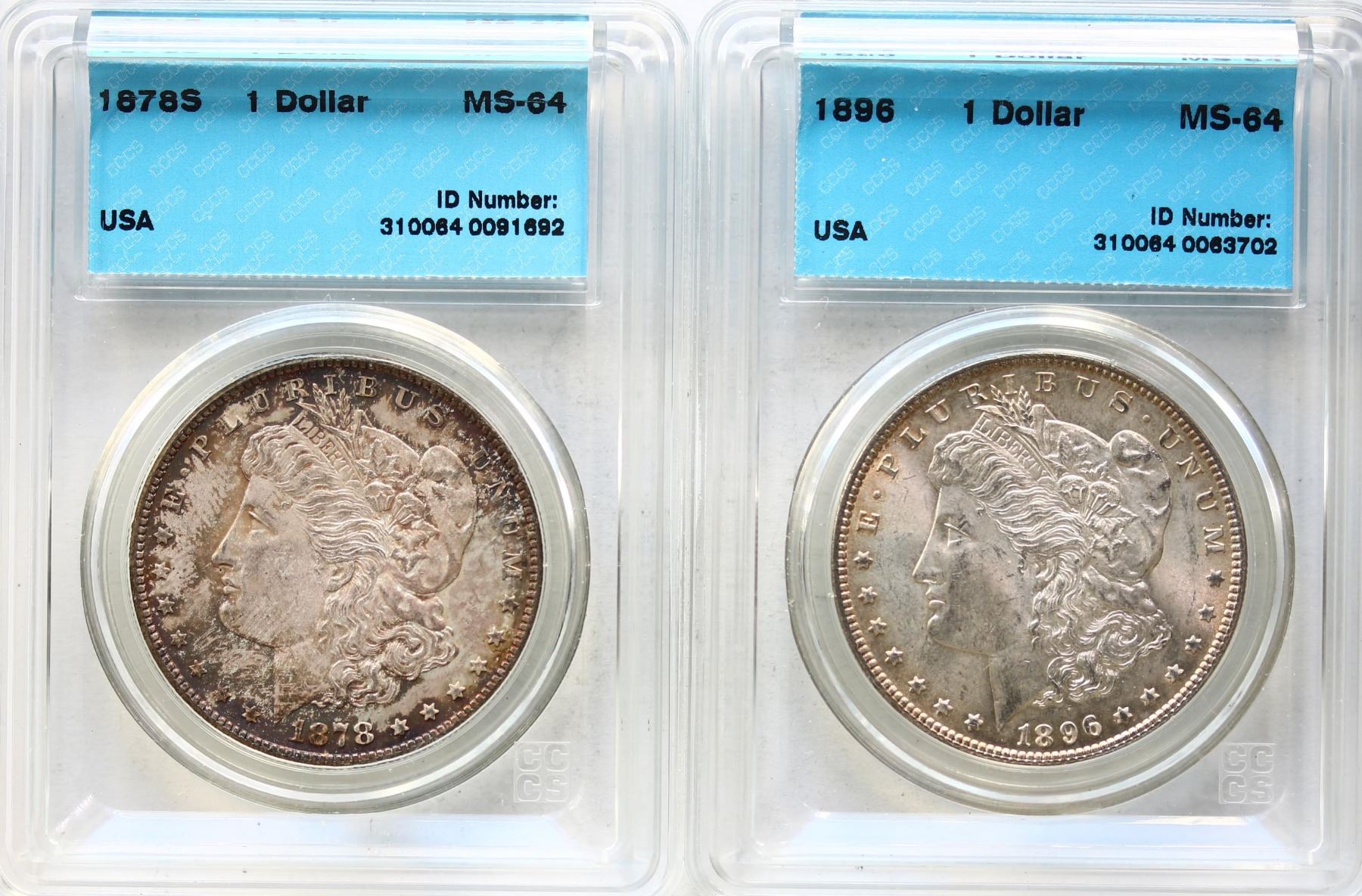 USA; 1878-S $1, 1896 both CCCS MS64.