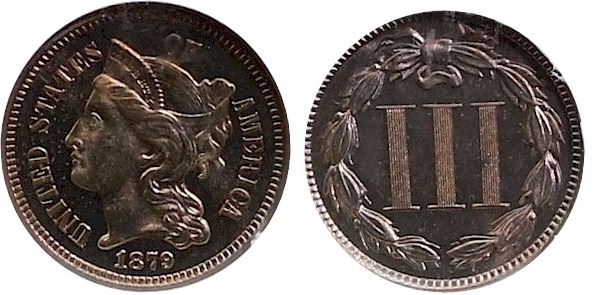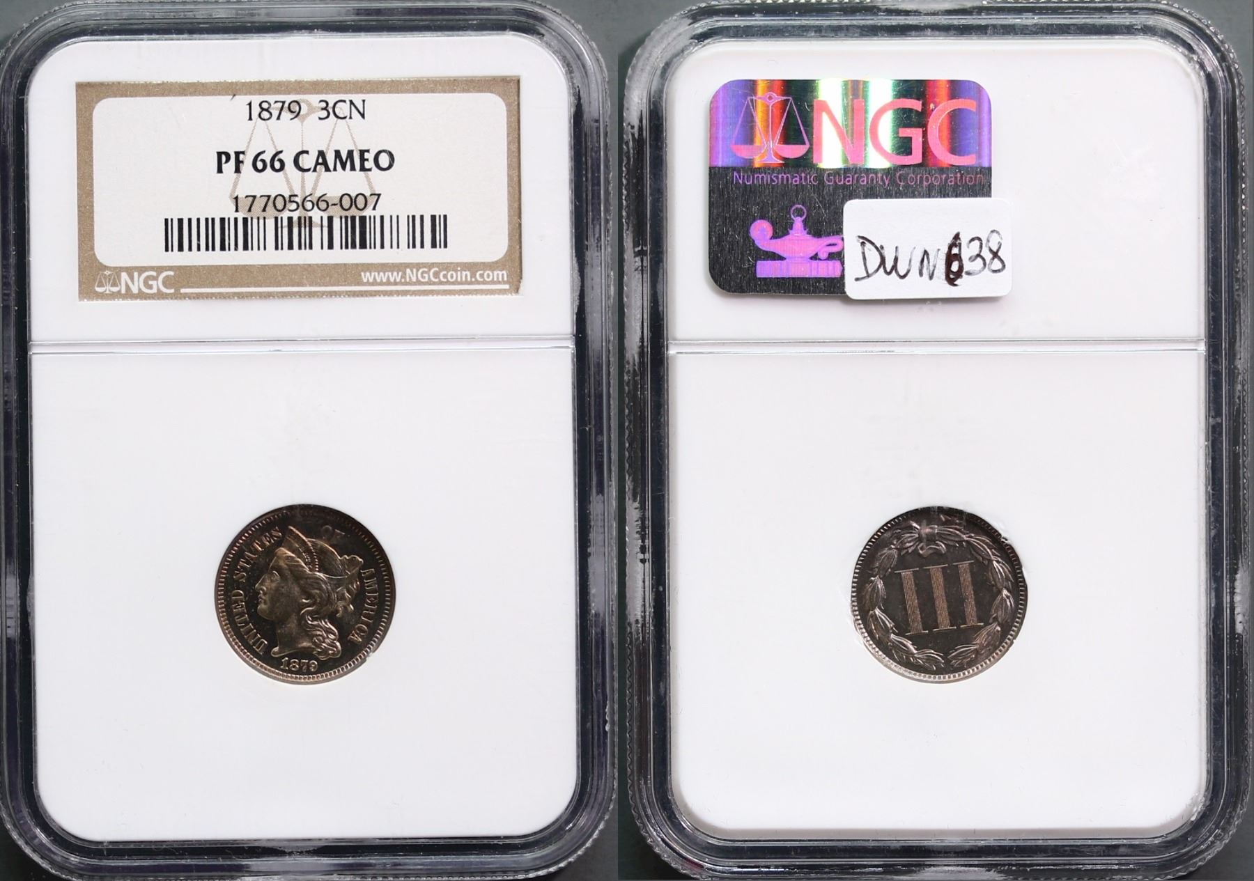 USA; 1879 3¢ Nickel NGC Superb Gem PROOF-66 Cameo