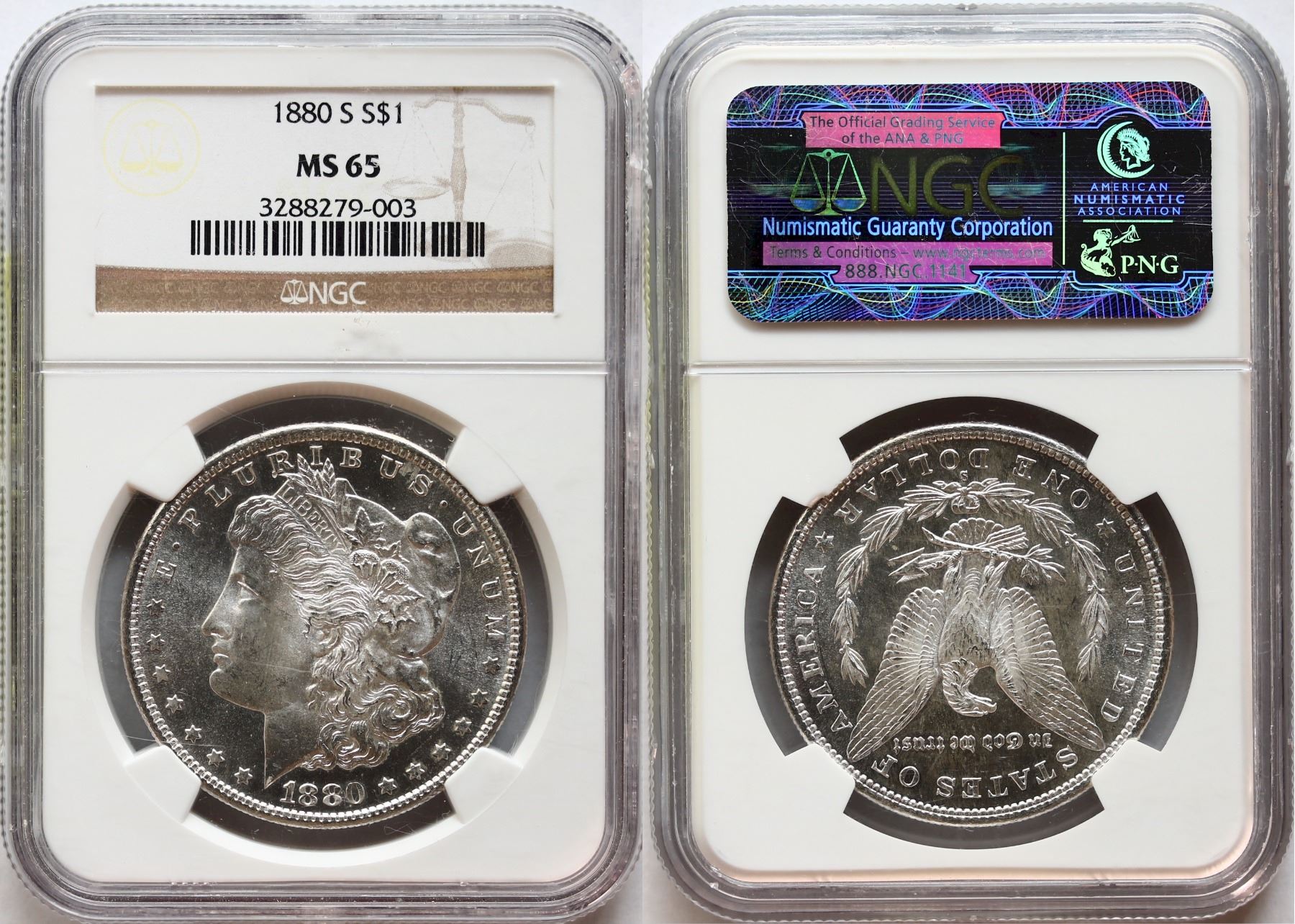 USA; 1880-S $1 NGC MS65