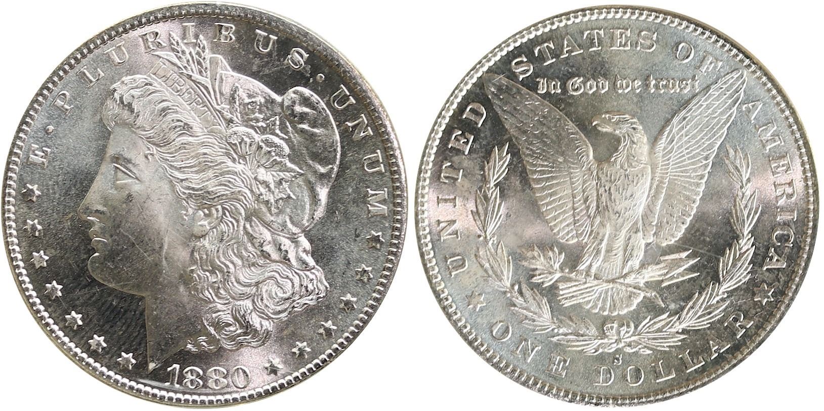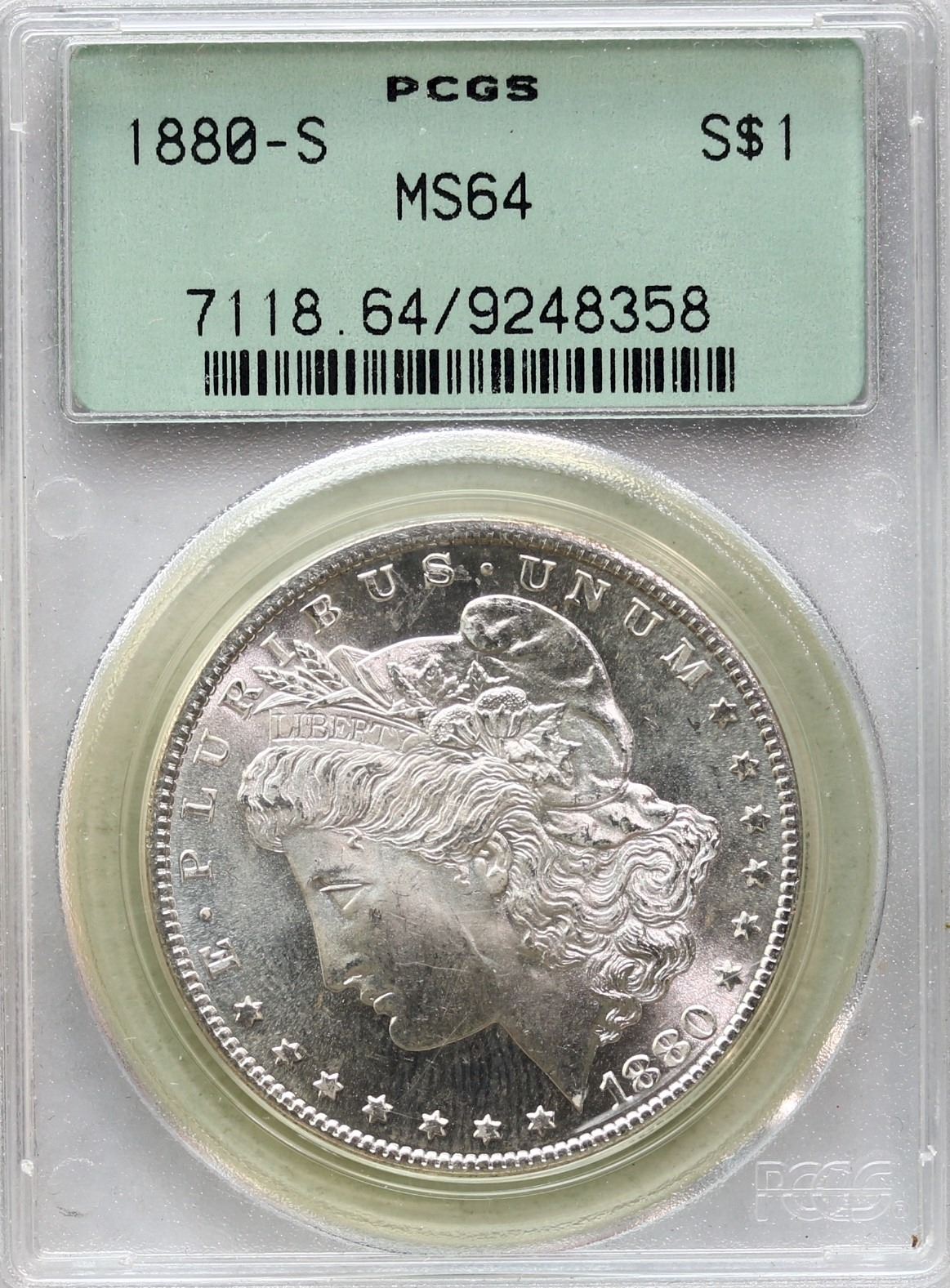USA; 1880-S $1 PCGS MS64 Fully brilliant