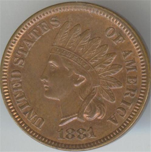 1881 1 cent obverse lettering doubled, MS-64 red brown