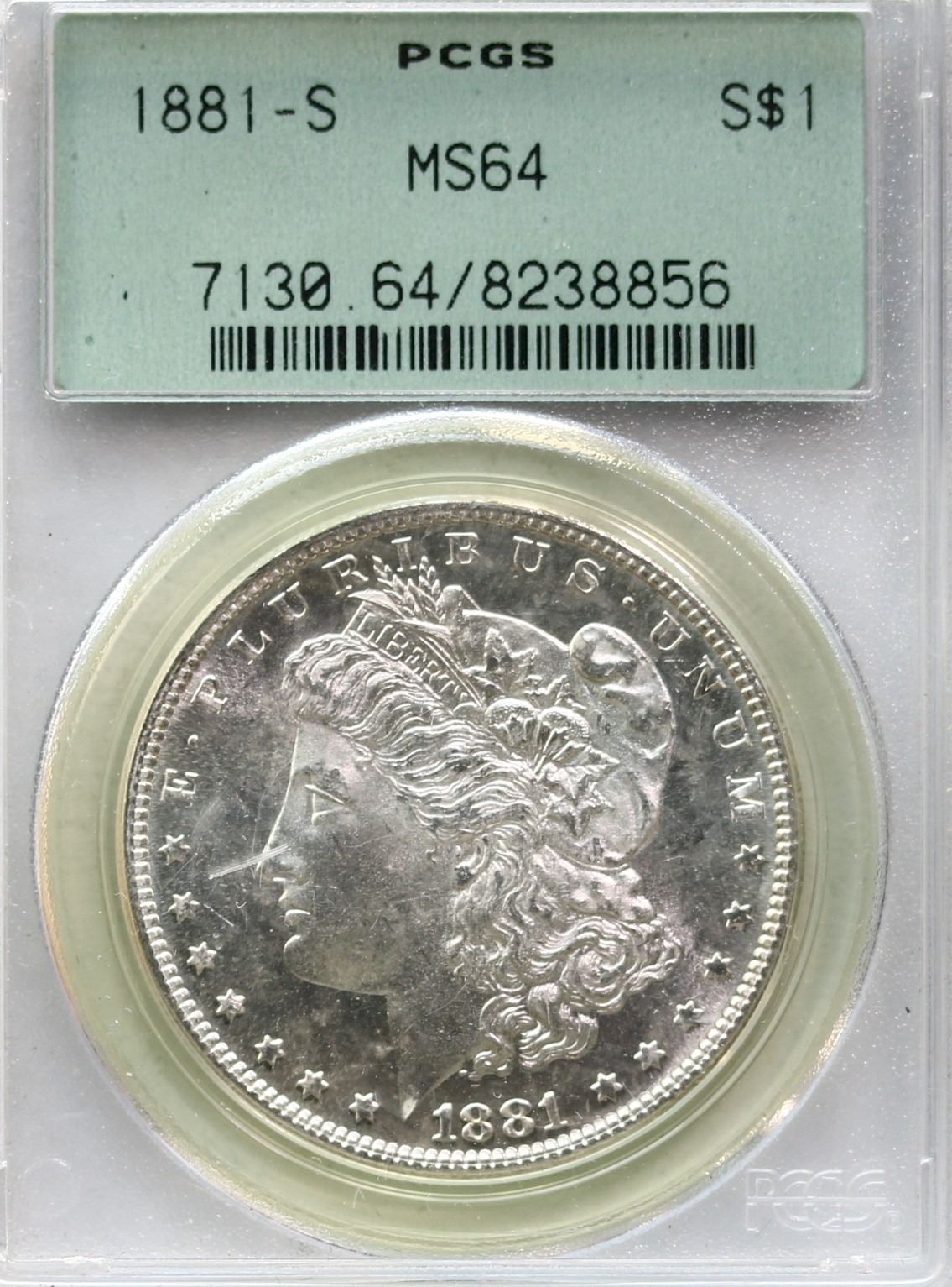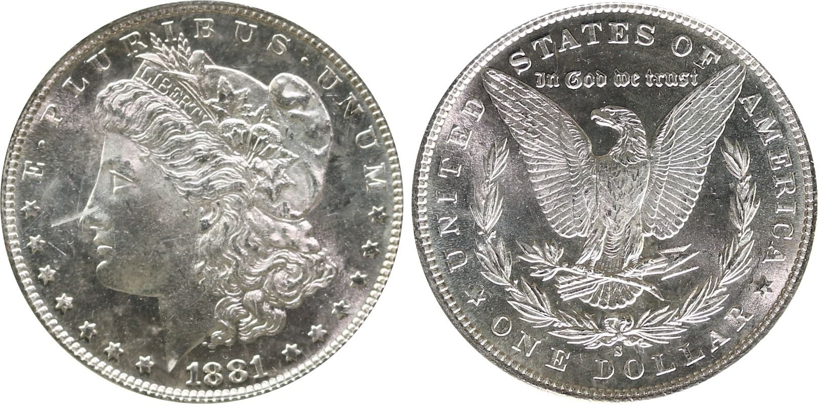 USA; 1881-S $1 PCGS MS64 Fully brilliant