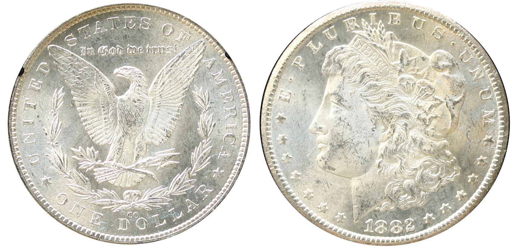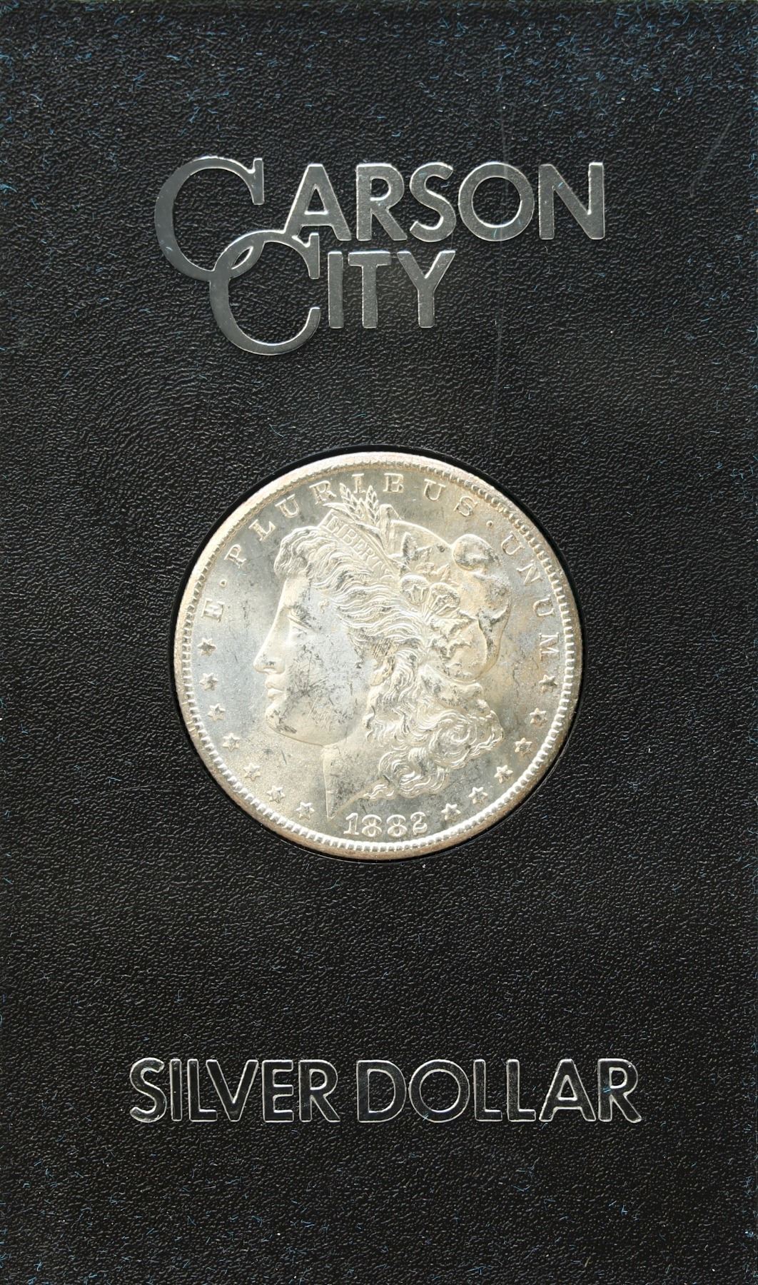 USA; 1882-CC $1 Choice Mintsate, Housed in carson city holder. Coin is superb, outer box is damaged.