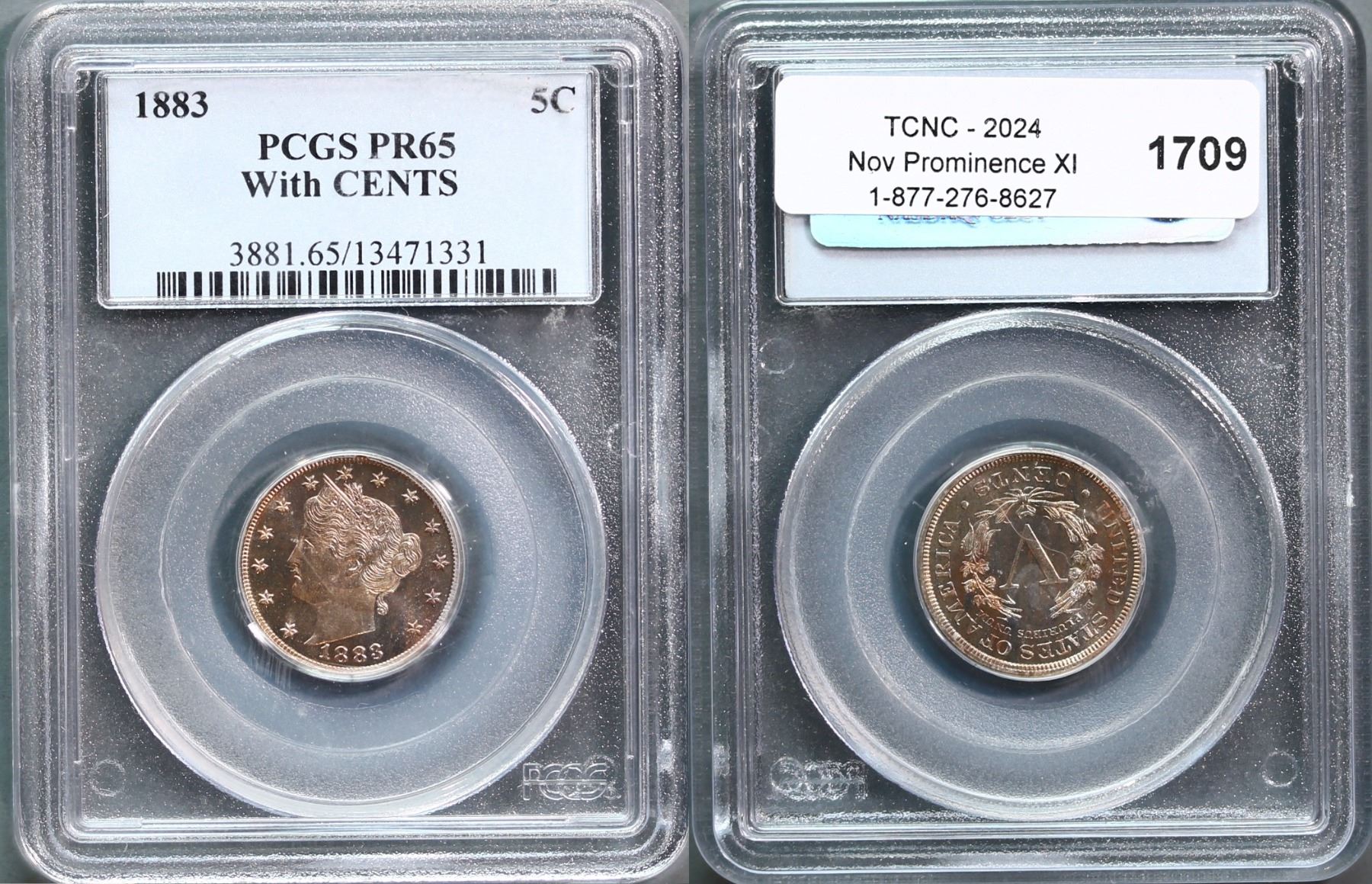 USA; 1883 5¢ with Cents PCGS Gem PROOF-65