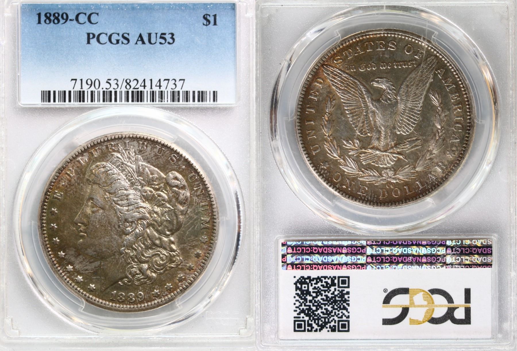 USA; 1889-CC $1 PCGS AU53. Very rare date. Not often seen and offered.