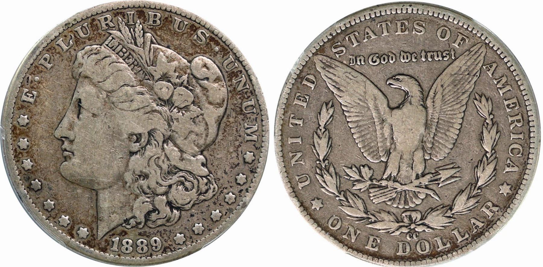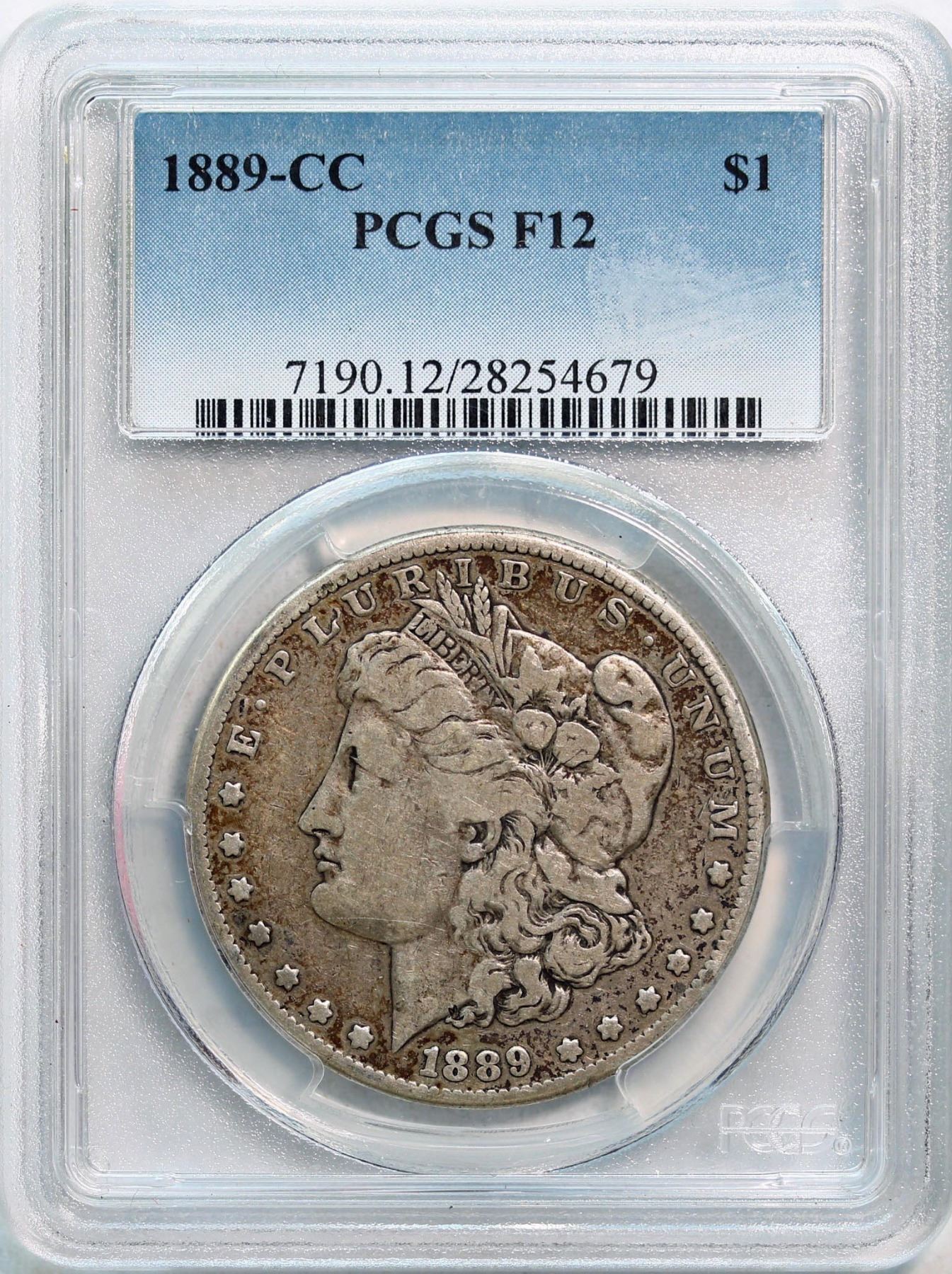 USA; 1889-CC $1 PCGS F12. Nice Carson City example.