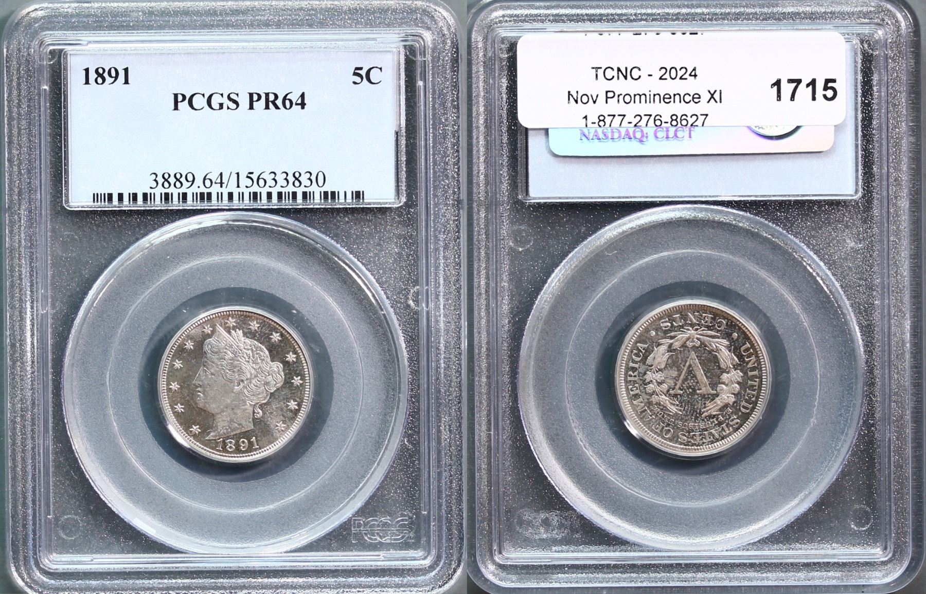 USA; 1891 5¢ PCGS Choice PROOF-64