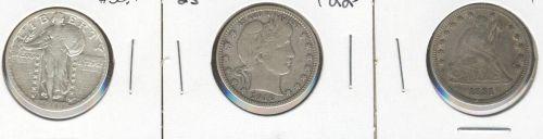 USA 1891 EF, 1916d Fine & 1918s VF-EF 25¢. Lot of 3 coins.