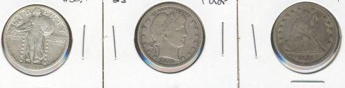 USA 1891 EF, 1916d Fine & 1918s VF-EF 25¢. Lot of 3 coins.