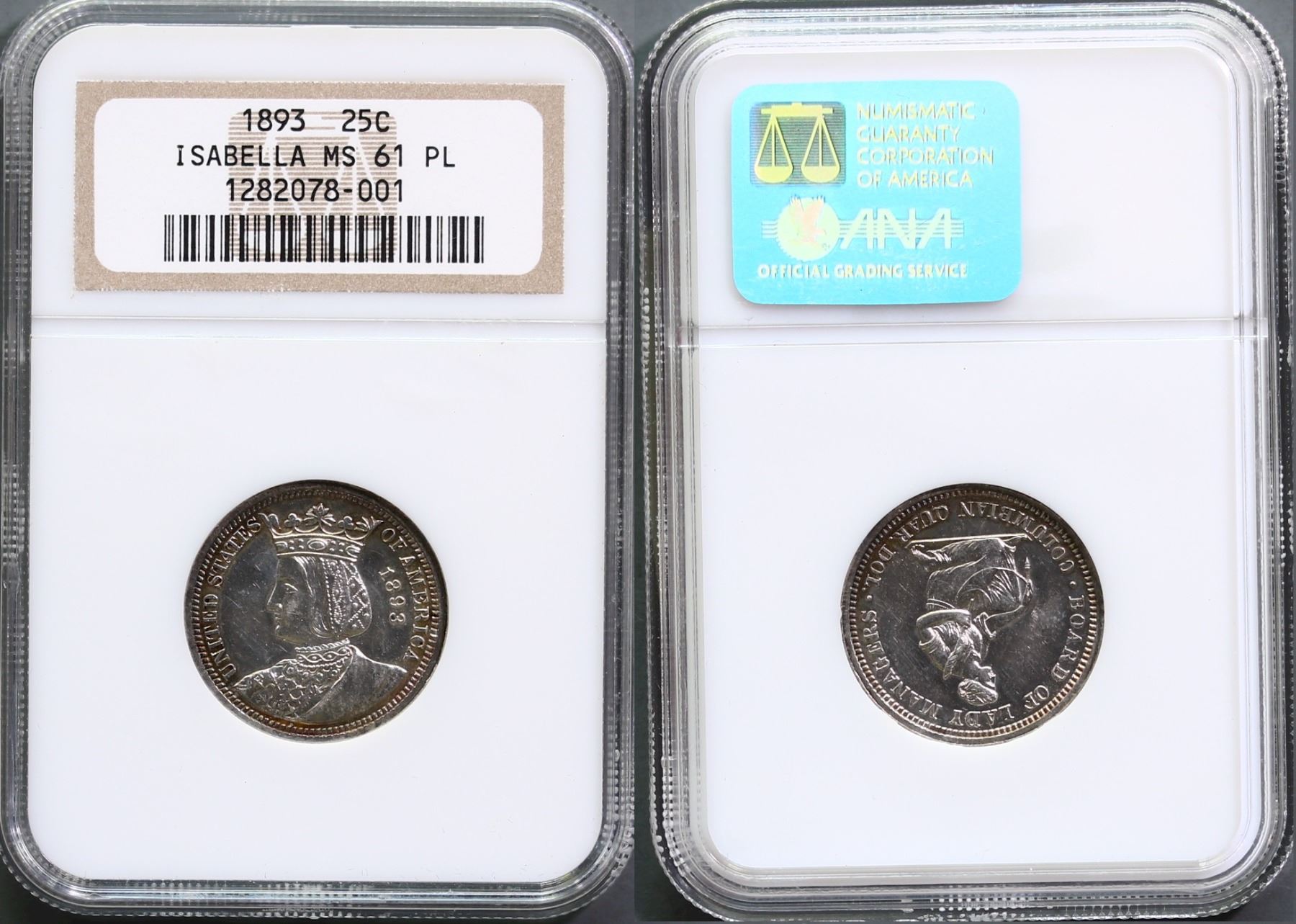 USA; 1893 25¢ Isabella NGC Mint State-61 PL