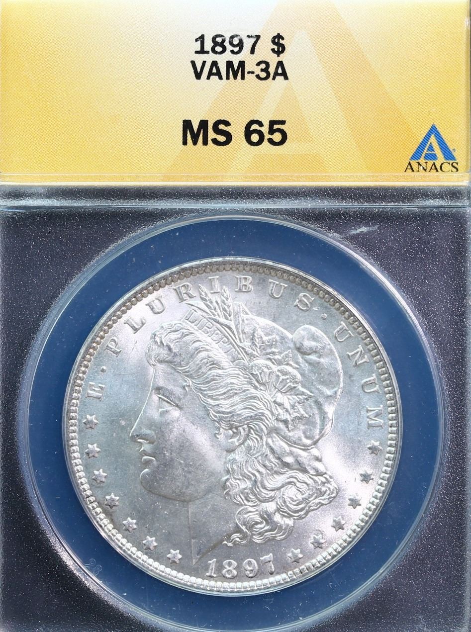 USA; 1897 $1 Vam-3A, ANACS Gem Mint State-65