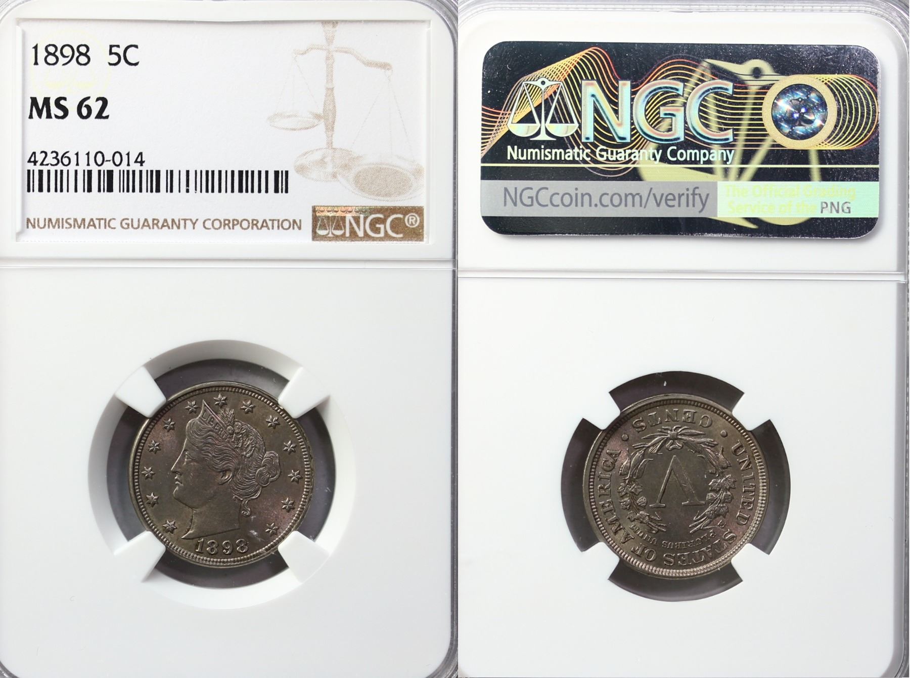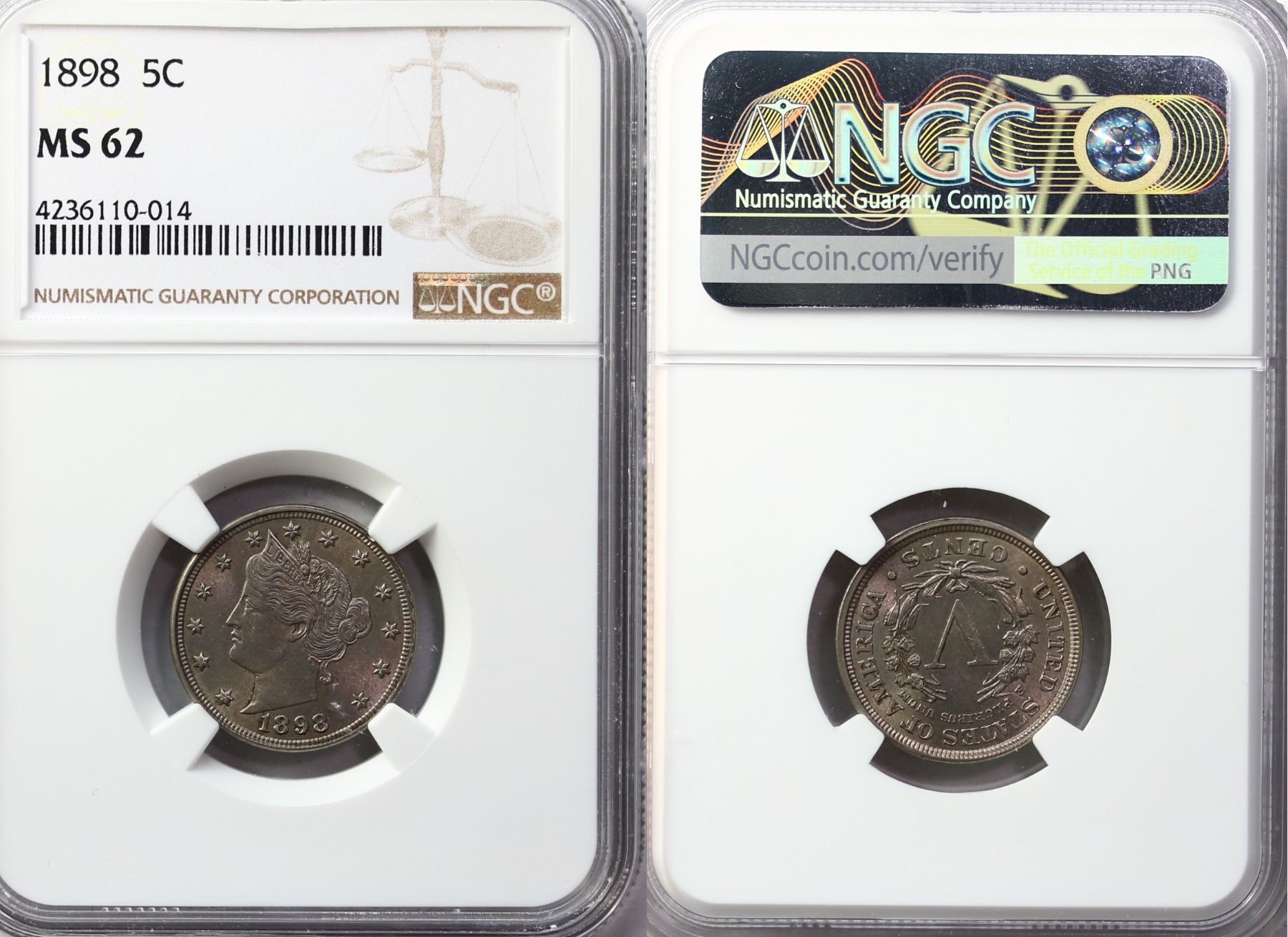 USA; 1898 5¢ NGC MS62. Attractive well struck example.