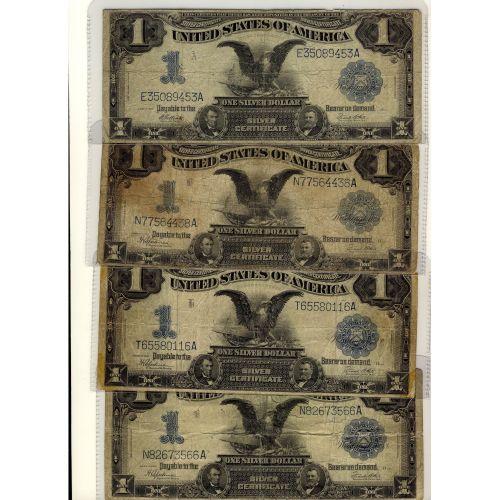 USA 1899 $1 FR-235(1) and FR-236(3). Lot of 4 notes all grade VG to Fine. One issue has slight missing corner top left.