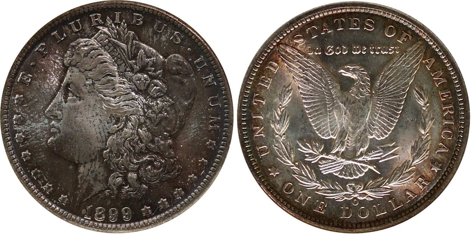 USA; 1899-O $1 NGC MS64 Nicely toned.