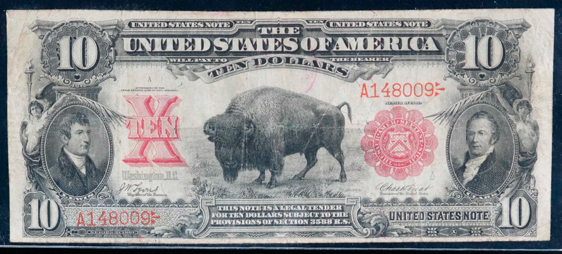 USA; 1901 $10 Fr.115 "Bison" #A148009 LCG F15, minor issue